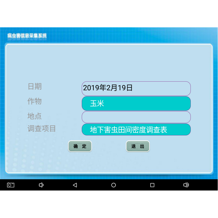 1、病虫调查统计器设有昆虫名称、植物病害名称、采集时间、地点、经纬度、分类数量、植物名、统计方法信息等项目,可随时录入,存储病虫的数据资料。