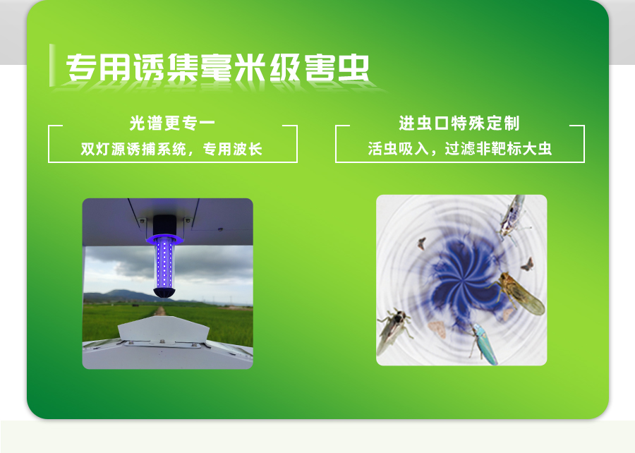1、毫米级微小虫体测报:特殊定制进虫口结构,过滤大虫干扰,有效捕捉微小虫体。