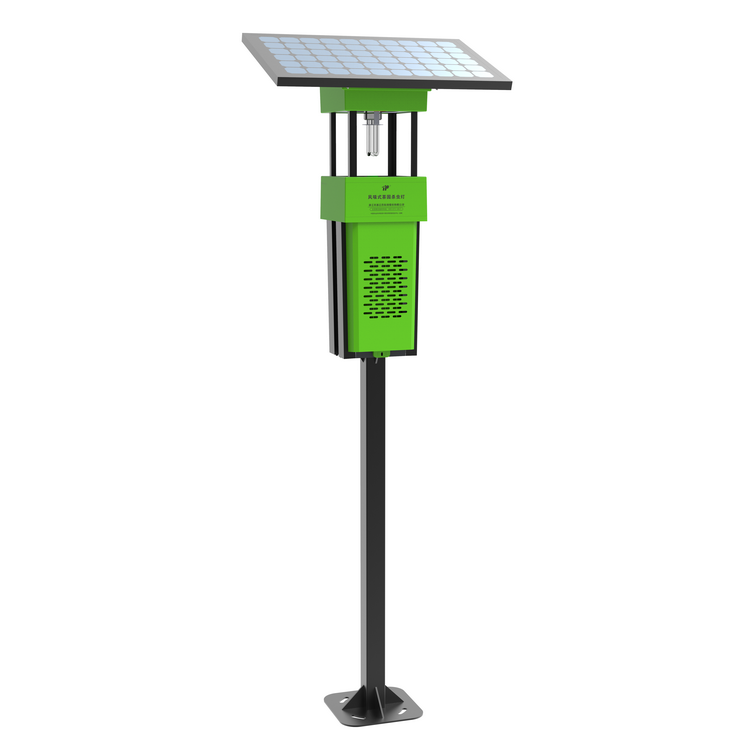 茶园杀虫灯主要针对茶小绿叶蝉,鳞翅目害虫,小叶蝉,尺蠖等害虫,利用光、波来引诱害虫成虫扑灯, 并较大限度避免对天敌昆虫的诱杀。风吸式茶园杀虫灯采用太阳能供电,风机转动产生气流将虫子吸入到收集器中,使之风干、脱水达到杀虫的目的。