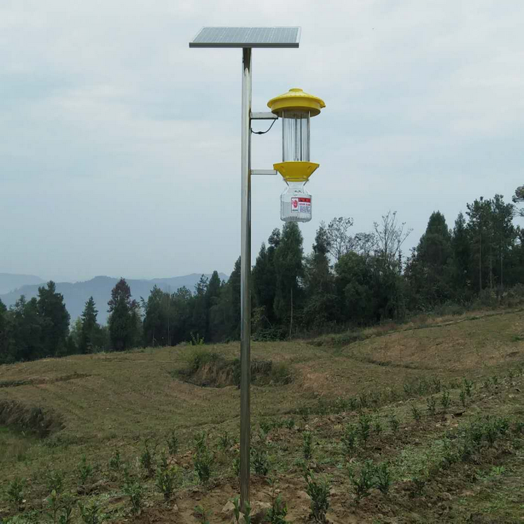 太阳能频振式杀虫灯通过太阳能电池板将光能转化为电能使用。输出安全电压,节能省电,成本低,为以往害虫防治区域因电源供应困难而被迫放弃灯光诱杀害虫的地区,提供了先进的防治工具。太阳能杀虫灯在节能环保、降低农药残留、提高产品品质、减少对环境的污染贡献突出,可广泛应用于农业、林业、蔬菜、仓储、茶叶、烟草、园林、大棚、葡萄园、水产养殖等领域。